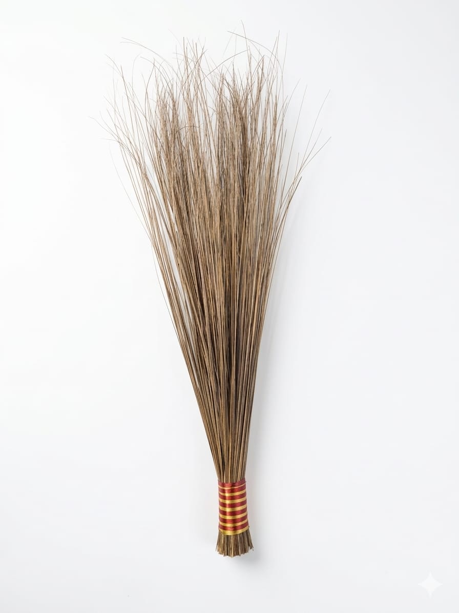 A palm broom stick is a traditional cleaning tool made from dried palm leaves or grass stems, commonly used for sweeping floors, courtyards, and outdoor areas.
